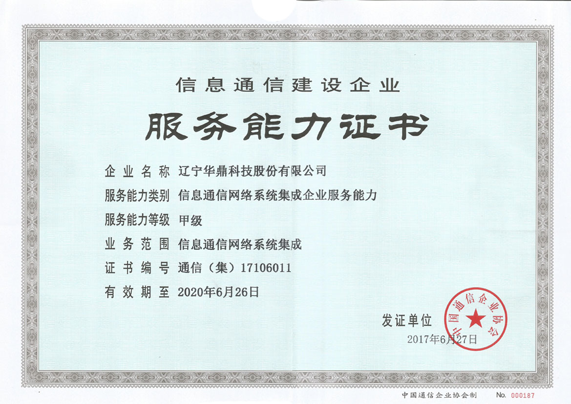 信息通信網(wǎng)絡(luò)系統(tǒng)集成企業(yè)服務(wù)能力甲級(jí)資質(zhì)審批通過(guò),下發(fā)證書(shū)